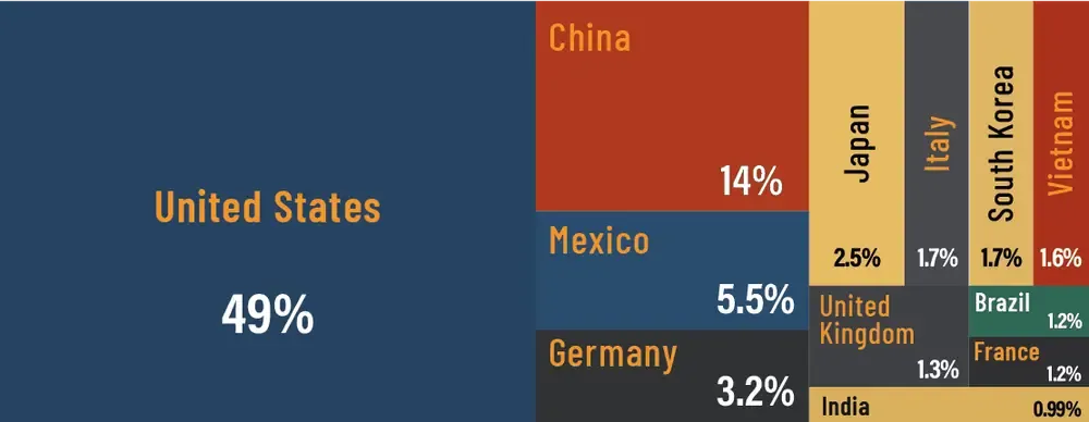 These imports all run into the billions of dollars. Canada’s trading partners by imports for 2021 include the following from top to bottom: